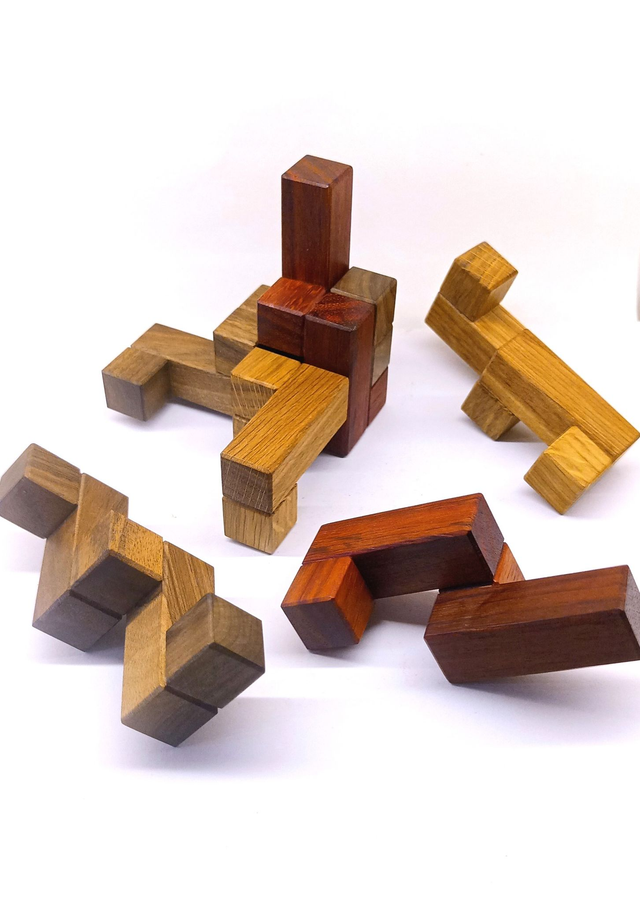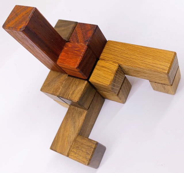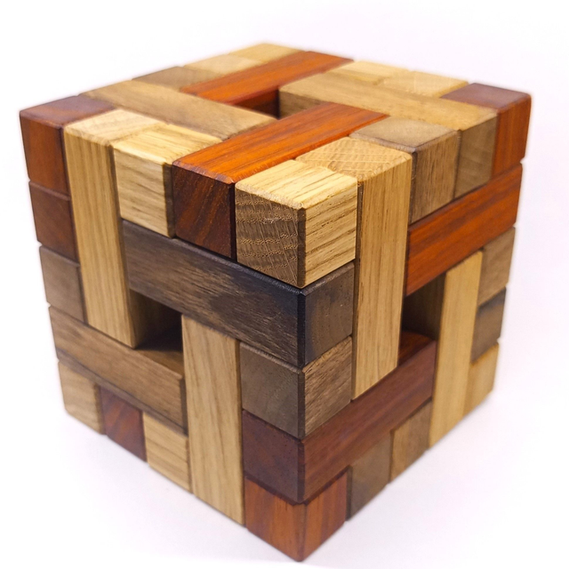 Démonter puis reassembler ce cube en noyer , chene et padouk constitué de 12 pièces !